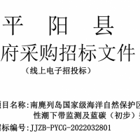 南麂列島國家級海洋自然保護(hù)區(qū)生物多樣性潮下帶監(jiān)測及藍(lán)碳(初步)數(shù)字平臺的公開招標(biāo)